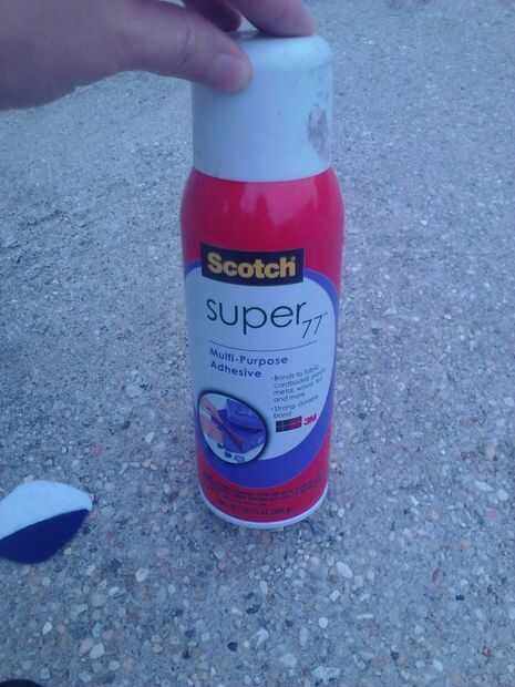 Ahora que tienes todas tus prendas, es tiempo de salir con una lata de adhesivo en aerosol para unir los pedazos del ojo y aplicar al sombrero.