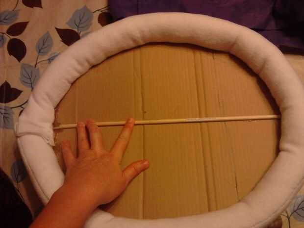 Arreglar el tubo alrededor del borde externo de la cáscara. Luego caliente pegamento en su lugar. Traslape los extremos del tubo y coserlas juntas. Corte el exceso.