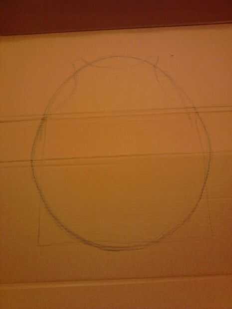 Coloque su camisa sobre la cartulina y traza con lápiz el contorno de la camisa sin las mangas. Quite la camisa. Ahora convocar a su lado artístico y esbozar un óvalo que se extiende un poco más arriba de la línea del cuello, más baja que el borde inferior y más allá de los lados de la camisa, así como un poco más allá de los agujeros del brazo. (ver foto)