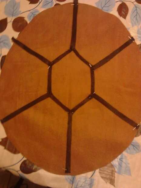 Ahora coloque las tiras previamente cortadas en el óvalo grande para crear el patrón de shell. * Asegúrese de que arregle en los no marcados lado *, pin y coser.