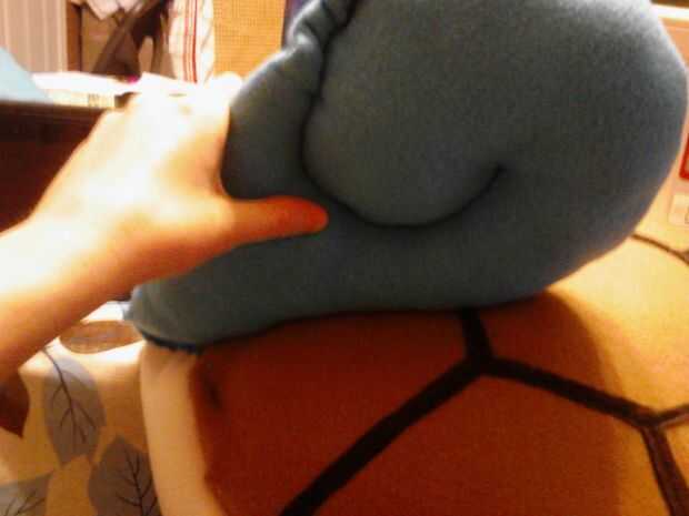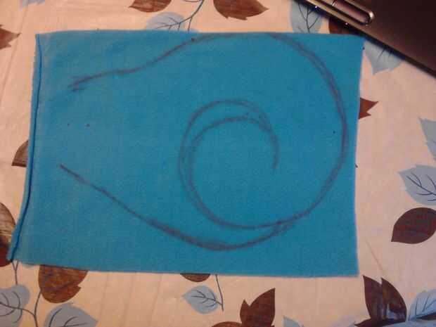 Doble un pedazo de polar azul en medio. Marque la longitud deseada con puntos. Utilizar una foto de referencia para ayudarle a bosquejar hacia fuera la cola. Esbozar un poco más grande de lo necesario que es para parecer los márgenes. Recorte. Debe tener 2 ya que corte de una pieza doblada. Prender los bordes juntos y coser, dejando el final abierto. Voltear de adentro hacia fuera.