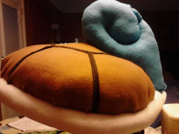 Organizar en la cáscara. Extienda los bordes abiertos de la cola sea un borde a cada lado de la cola contra la cáscara y el pin y coser. Luego corte el sobrante.