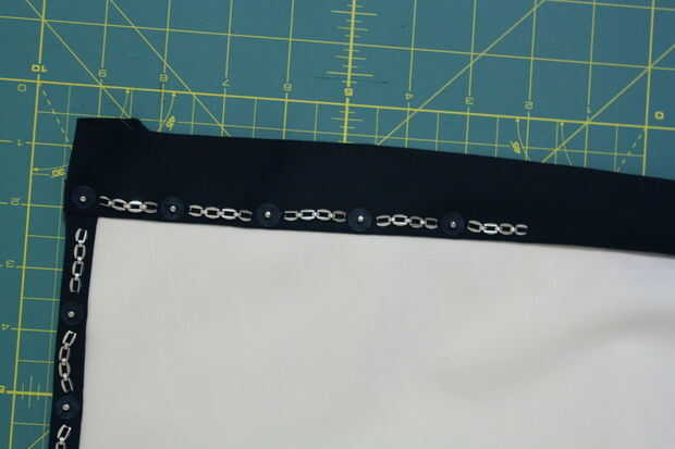 n. Añadir complemento siguiente en 1½" de poste a poste. Si usando coser broches de presión, asegúrese de que la costura no se ejecuta por el borde exterior de la Unión. Continuar agregar broches abajo borde a la cintura, midiendo después de cada presión (esto asegura bordes no arrugarse más adelante cuando se cierra la chaqueta).