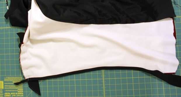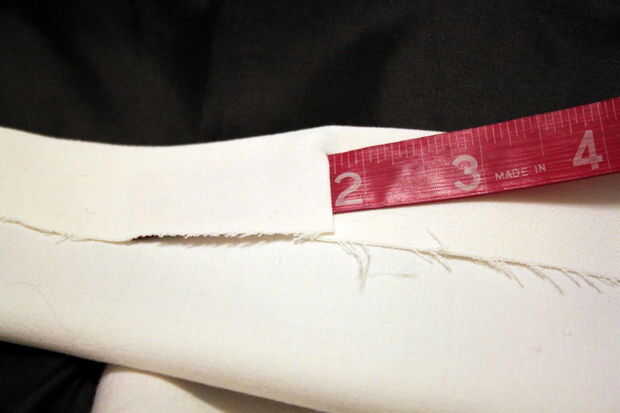 t. empezar costura vinculante vertical en la punta de la A / B de la línea de costura, girar y continuar coser vinculante en su lugar a lo largo de la línea de costura, en esquina y plegable tela sobrante fuera del camino, que gira hasta 2" de la parte inferior