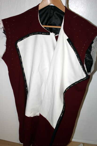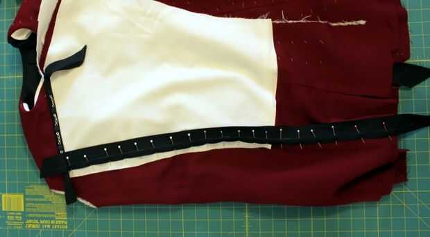 h. parte delantera izquierda con derecha y marca de colocaciones para broches en hombro/exterior punto y luego asegúrela en. No coloque presión exterior en este momento, en su lugar empezar en otro, coser a través de enlace y capas K sólo
