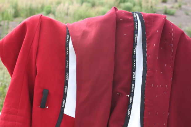 Enlace - no me gusta el bies preestablecida. Es generalmente fino algodón barato o poliéster y como tal va a brillar muy fácilmente de la plancha y no tiene la profundidad de color que hace de lana (o en este caso la profundidad de negro). Así que busqué alternativas. Encontré un sentido vinculante para que la tubería, pero era demasiado estrecho y tenía demasiada pila para el atascamiento delantero, así que utiliza una mezcla de lana y Lycra y cortar las tiras de bies yo para el frente. ¿Valió la pena hacer mi enlace? Realmente creo que no, me iré con los embalados vinculante la próxima vez, pero usted puede juzgar por sí mismo forma las fotos si merece la pena. También, opté por utilizar una sola pieza del frente Unión por aleta y doblar en la esquina, si quieres un punto más definido podría utilizar dos piezas y terminar en la esquina (que probablemente hará en la siguiente chaqueta).
