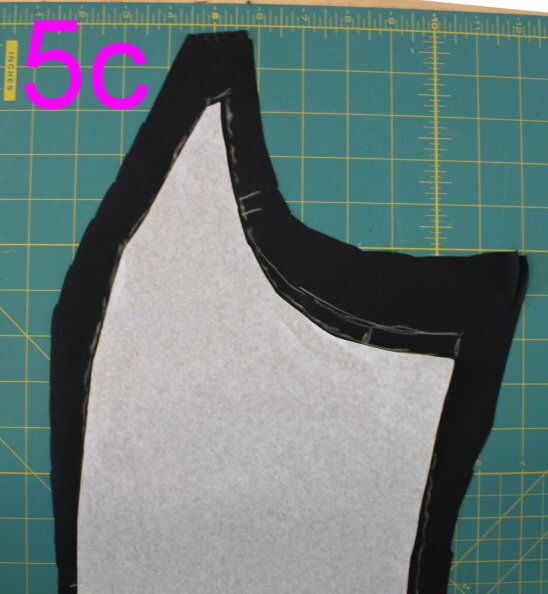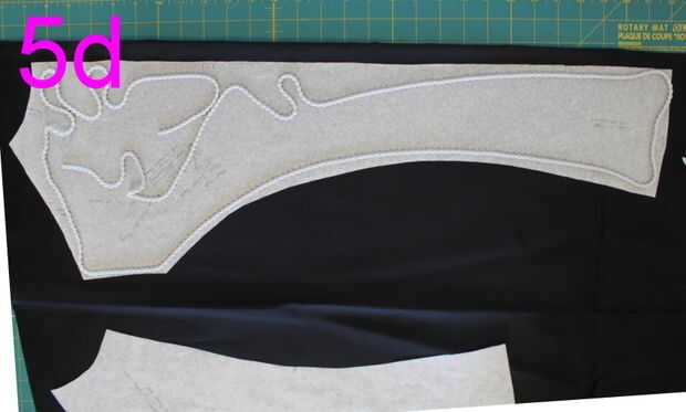 d. Recortar piezas de la guarnición de D y corte C con 1" exceso en el centro de la espalda y soltar cualquier cantidad requerida para hombrera si utiliza