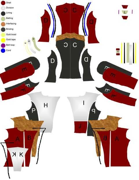 e. crear forro "P" para la parte delantera. Pieza de patrón laico H sobre combinado A / B crear "P", que se alineará con H y I / J para el revestimiento completo se unió a la D. Cortar dos.
