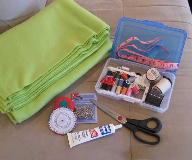 -Suministros básicos de costura (aguja, hilo, alfileres) o pegamento para tela