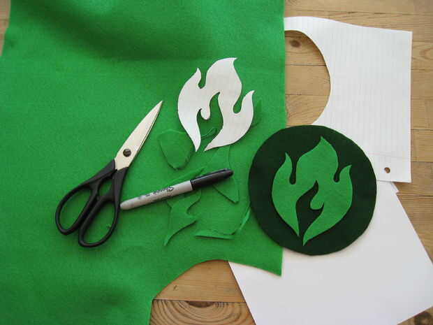 El símbolo de papel de corte y utilice como patrón para cortar el símbolo de contrastantes colores de fieltro. Si usted no está planeando convertir su camiseta a una camiseta normal después de Halloween entonces pegar el fieltro directamente. Otros sabios más intrincados diseños en una sola pieza grande de fieltro del pegamento y libremente cosan a usted la camisa. Si usted camiseta se estira cuando te lo pones, asegúrese de que usted lleva la camisa cuando prender el fieltro.
