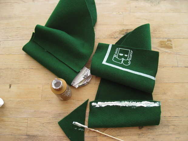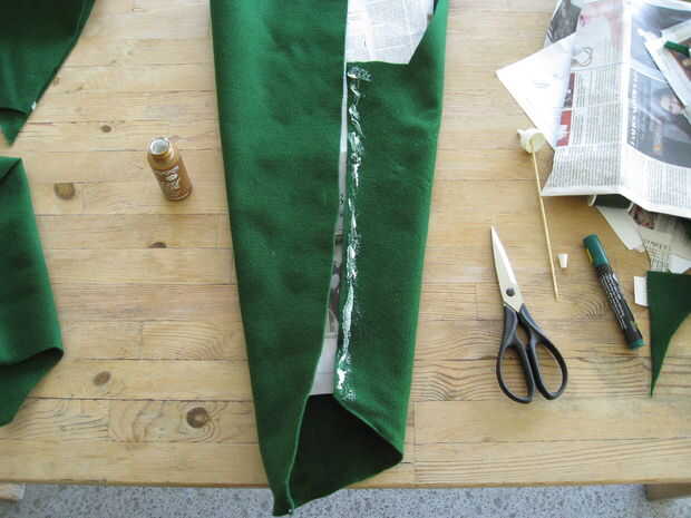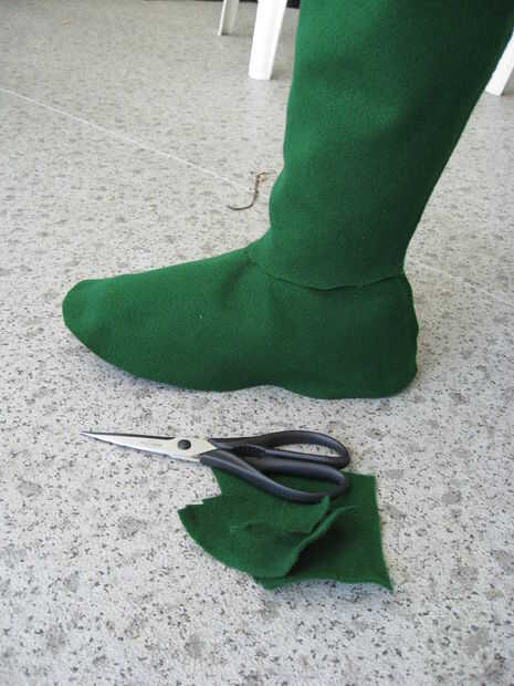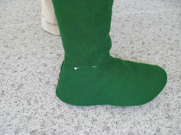 Para la parte superior de la bota sigue los mismos pasos. Envolver la pierna en el periódico para hacer un patrón y pegan el fieltro.