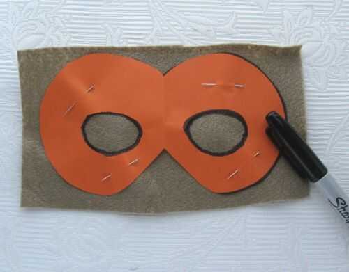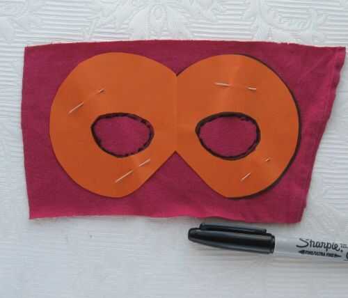 13. pin de su patrón de máscara de papel para un poco de la parte delantera ' T'shirt pieza, dibujar alrededor de él, asegúrese de que recuerda a los agujeros del ojo.