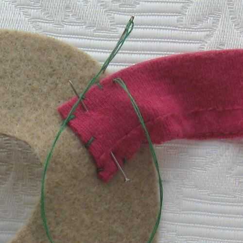 17. coser con sobre puntadas alrededor de los orificios de los ojos también.