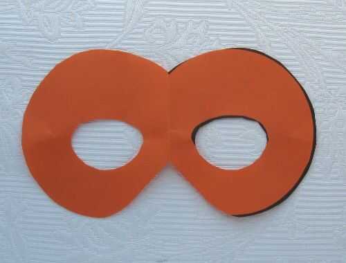 10. perno de la máscara de papel a unos 20cm por 10cm de fieltro de cualquier color, dibujar alrededor de él con la pistola, no te olvides de dibujar los agujeros del ojo!