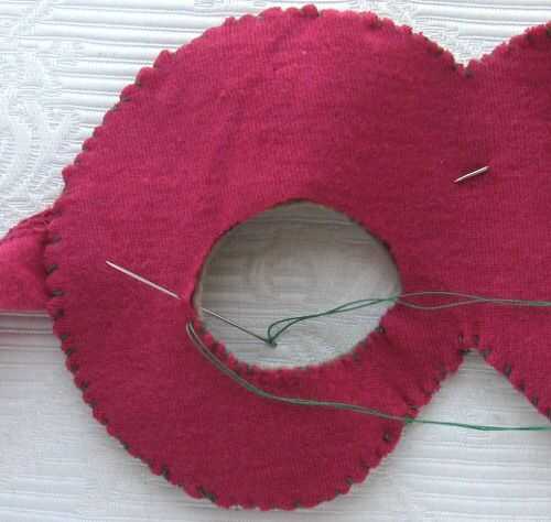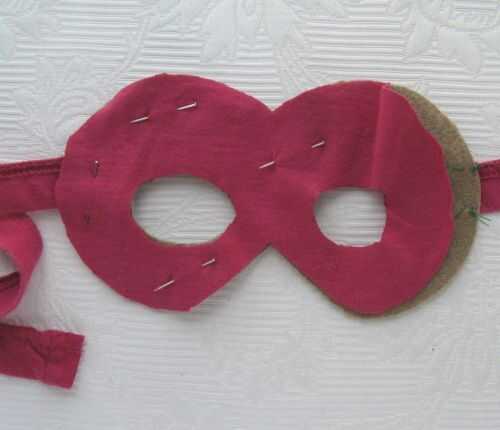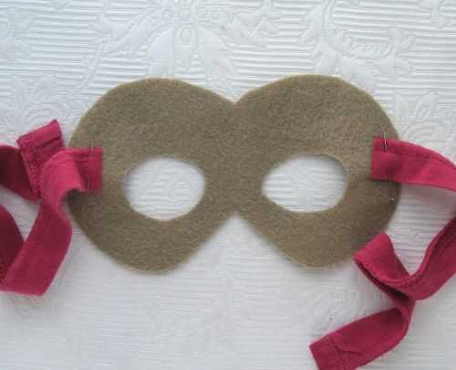 12. prender a ambos lados de la máscara de fieltro en la parte superior de los orificios de ojos y cose en el.