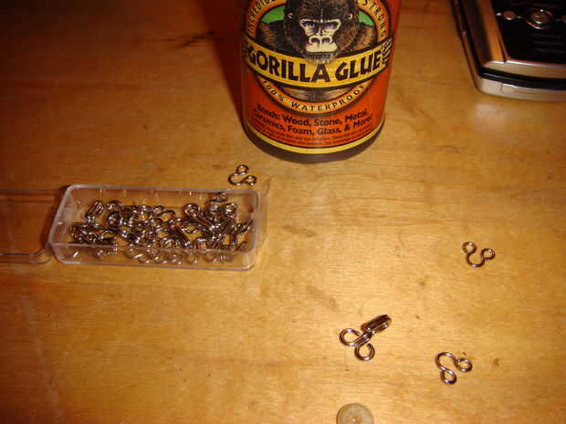 Mi novia tenía algunos cierres de gancho y el ojo en su kit de costura, así que os adjunto dos de los ganchos a ambos lados de la parte posterior del llavero con pegamento del gorila.