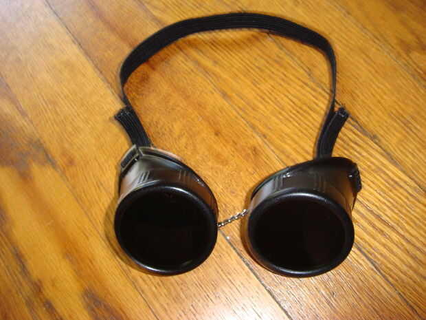 Bien, esto es donde todo comenzó. Realmente terminé haciendo unas gafas de estilo steampunk, pero que no eran adecuados para este proyecto. En lugar de ello pedí algunos soldadura spray pintado negro y gafas. Oh sí, yo también utilizan un Exacto y algunas lijas 220 para quitar el nombre de la empresa desde el lado antes les pinté. Hay fotos de eso, pero estoy seguro que usted consigue la idea.