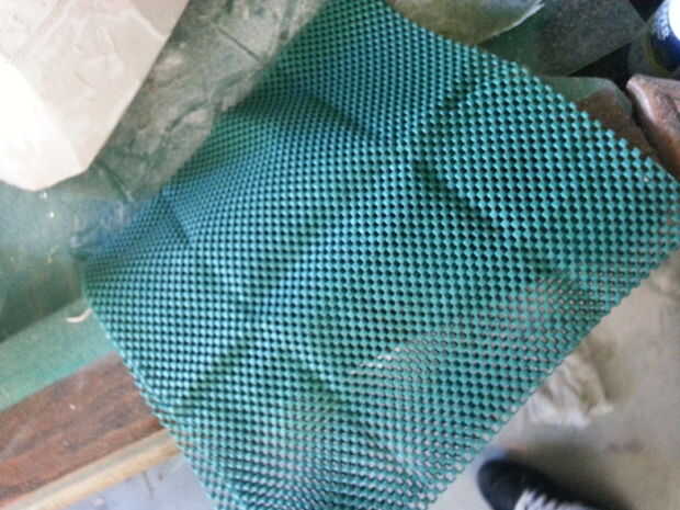 (2) mezcle y aplique unas capas de resina sobre el tapete verde