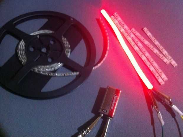 El rollo de LED era una buena solución para el traje ya que era barato y se podría cortar. Capacidad decente con un soldador viene bien... o al menos estar dispuesto a aprender. Rollo LED cuesta aproximadamente $10-15 en ebay... conseguir el rollo de 5m. No es necesario super brillante LED ya que estos eran cegadoras a personas como lo fue. Asegúrese de que usted consigue el rollo de LED autoadhesivo. También... ya que es el wet-costa oeste aquí... También conseguí el rodillo impermeable. En retrospectiva - fue agradable ya que estaba vertiendo lluvia en halloween.