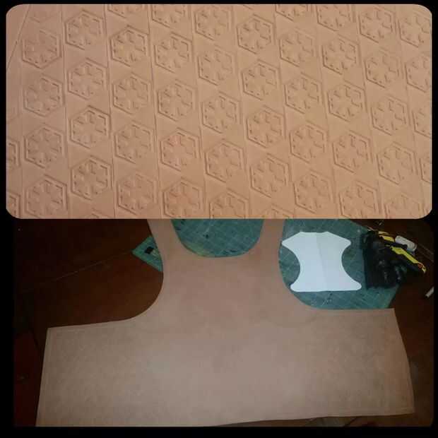 Después tuve la plantilla deseada para mi armadura de cuerpo, luego trazado las plantillas de Junta de cartel sobre mi piel. Para la armadura de cuerpo utilicé cuero de 15 oz de Tandy. Este es un cuero muy grueso y hará que sus manos cansadas; sin embargo, es es así vale la pena porque tiene su forma muy bien después de que se seque.