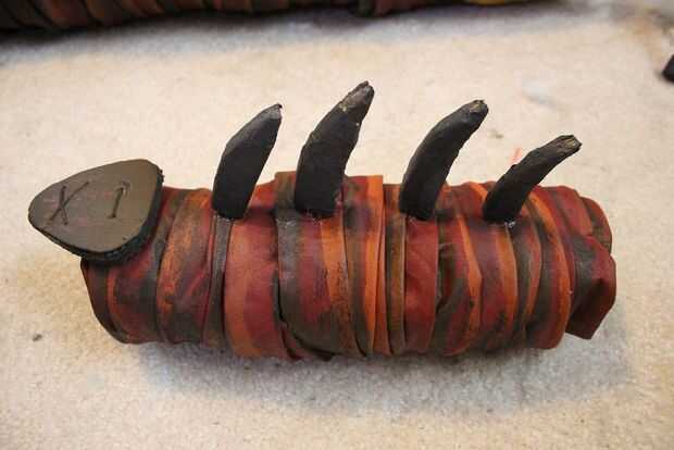 Hay una garra como mano que sobresale de la muñeca. Se utilizó la espuma de una estera del ejercicio 1/2. La mano de la espuma fue cubierta con cinta adhesiva, una capa de masilla, luego una capa superior de pintura marrón. La garra fue pegada a la muñeca con pegamento GOOP. En el área del codo una pieza triangular de la armadura fue pegada en la.