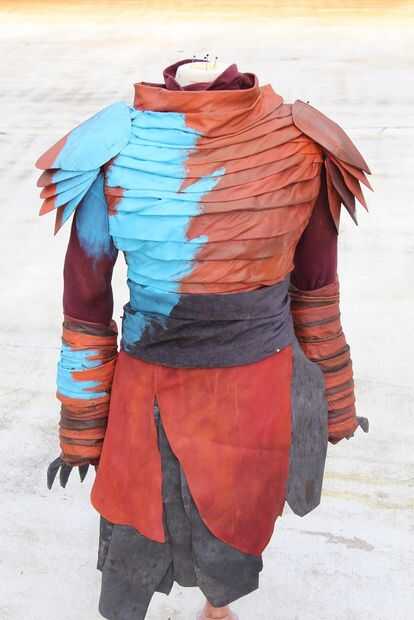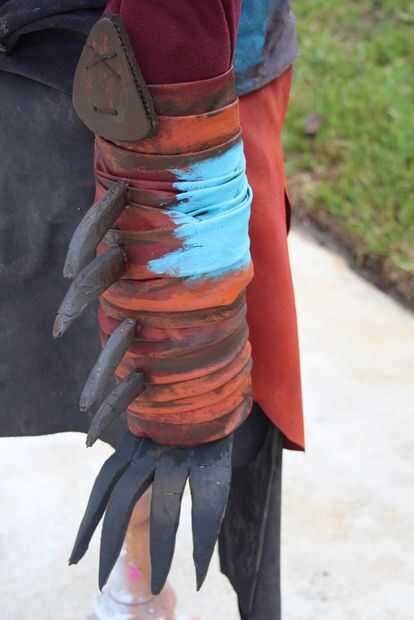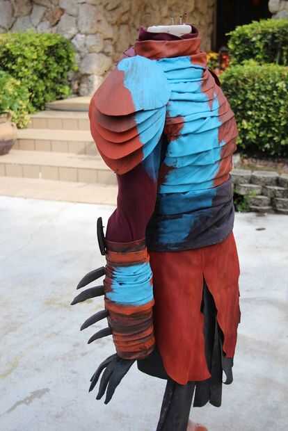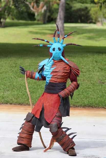 peluca - hecha de hilo amarillodiadema - simple pedazo de correa de cuerocamisa a rayas - compra localarmadura de hombro - de la espuma del arte, puntas de papelfalda de cuero - compra material local, para parecerse a falda de películaespigas - hecha