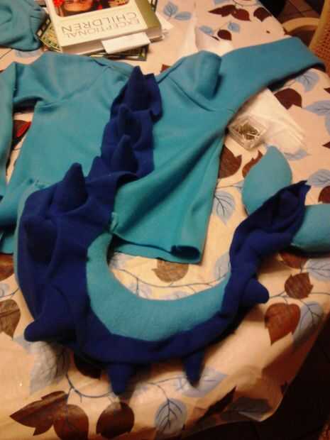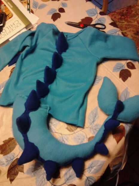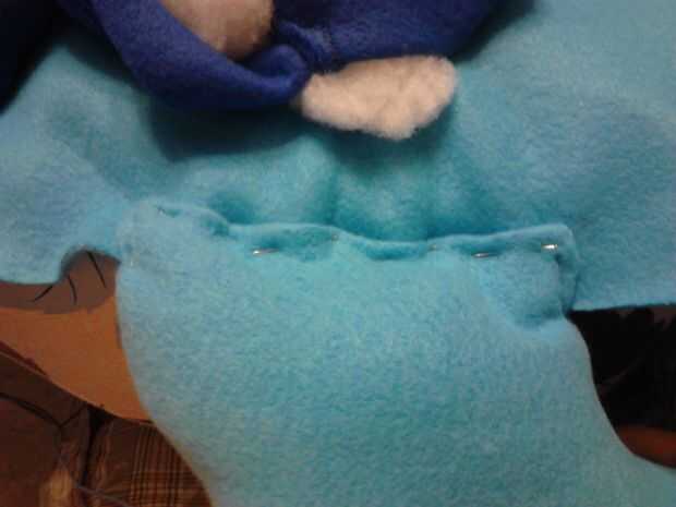 Con el portador previsto ponerlo en y ver cómo la cola cuelga. La cola no cuelgue lo que quería así que cubrió la punta de la aleta en el frente de la camisa y coser en su lugar.