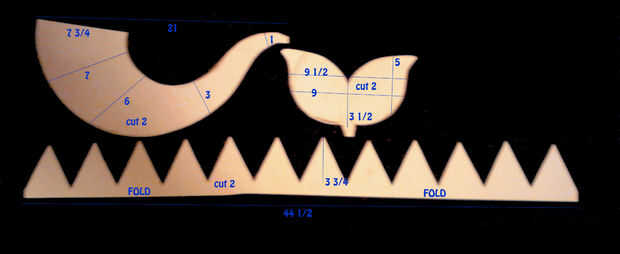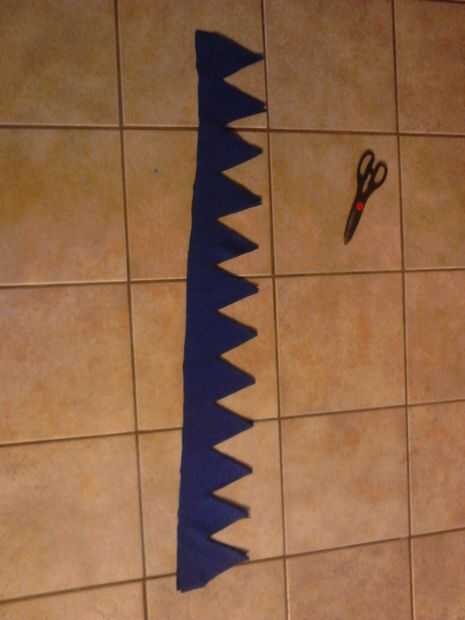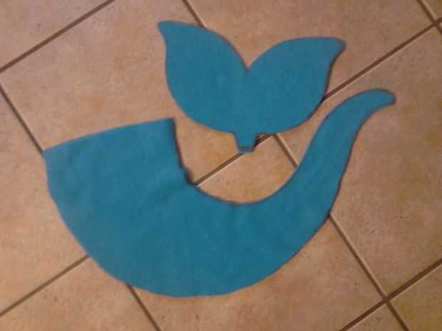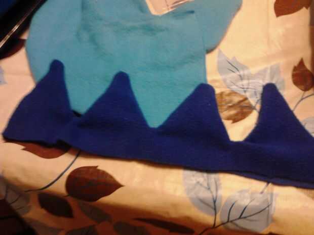 Primero trace el patrón de picos en el polar azul oscuro y la cola y la aleta en la luz polar azul. Usted necesitará 2 de todo por lo que se les deben trazar sobre un pedazo doblado. Recorto.