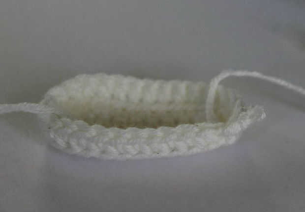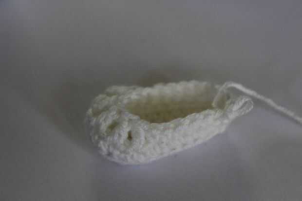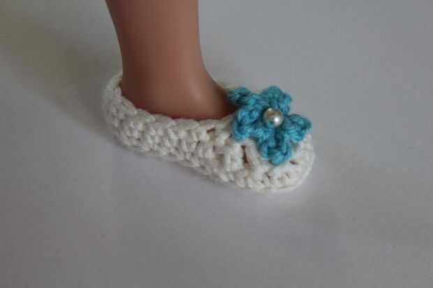 Ronda 5: Ch 1, sc en el siguiente 5 sts, (Sk siguiente st, sc a st siguiente) 4 veces. SC en el resto de los puntos de sutura alrededor y sl st a. Fije apagado su hilado y tejido en los extremos. Puede Agregar perlas o flores para los zapatos si quieres.