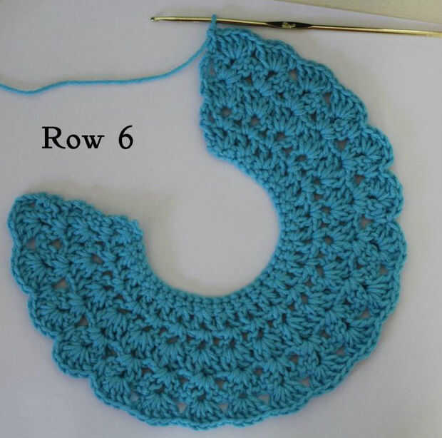 Fila 6: ch 3, 1 shell en próximas 3 conchas; [este es el lado derecho de la espalda], (ventilador de cáscara en cáscara siguiente de la hilera anterior, 1 sc en el espacio entre cáscaras) 3 veces, ventilador shell; [manga derecha], 1 cáscara en próximo 5 conchas; [esto es el frente], (ventilador de cáscara en cáscara próxima de la fila de rev, 1 sc en el espacio entre cáscaras) 3 veces, ventilador shell; [esta es la manga izquierda, 1 shell en próximas 3 conchas; [esta es la parte de atrás izquierda], CC en el último st.