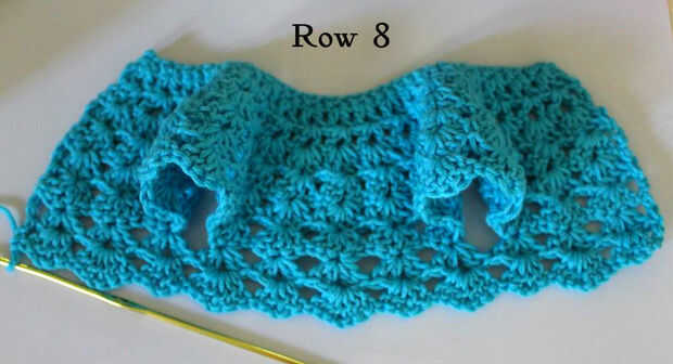 Paso 3: Parte superior del vestido - filas 6 a 10