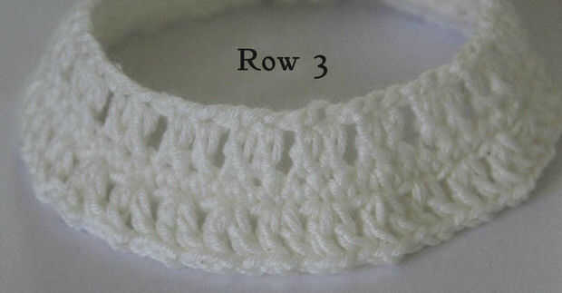 Ronda 3: ch 3, skip 1 st, * V-st, st de saltar 1, repetir de * a * hasta el final de la ronda, sl st a ch 3. Esto comienza el patrón de shell.