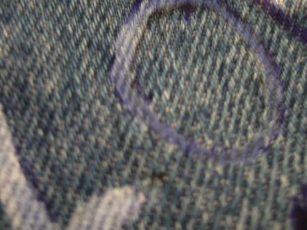 Una vez que el marcador permanente allí, fui los elementos que requieren con el lápiz de papel líquido. Lo que yo no había contado en era sólo Cómo goteo sería... damn! Fotos 4 y 5 deben dejar claro qué problema era. El líquido empapado/malvados por el dril de algodón. El derecho de no mira...
