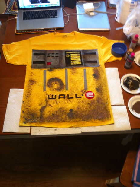 Utilice esponjas diferentes y espesores para crear diferentes texturas de la pintura. Encontré que alterna capas de pintura marrón y negra daba ser un aspecto muy natural de "moho". Esta camisa es tu lienzo! ¿Qué crees que se verá mejor?