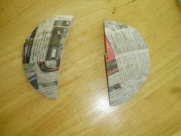 Ahora lo que hice fue incorrecto. Me corta la esfera en cuartos y luego cortar círculos para la cabeza y los lados de wheatley. Usted debe recortar los agujeros primero cortados la esfera en cuatro partes.  Usé un marcador en una cadena para cortar los círculos, pero puede utilizar una brújula. Debe cortar un gran círculo y de eso Círculo de corte un poco uno que cortará en dos para hacer los párpados. Después de cortar círculos en la parte de la esfera, luego corta la esfera en cuartos. NO hacer lo que hizo y corta la esfera en cuartos y luego intente cortar los semicírculos en cada parte. No encajan bien. ES ABSOLUTAMENTE NECESARIO CORTAR LA ESFERA EN CUARTOS O DE LO CONTRARIO SERÁ IMPOSIBLE CUBRIR EN TELA!