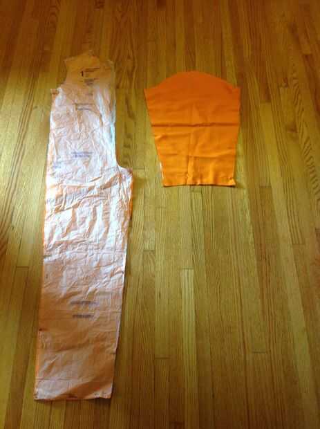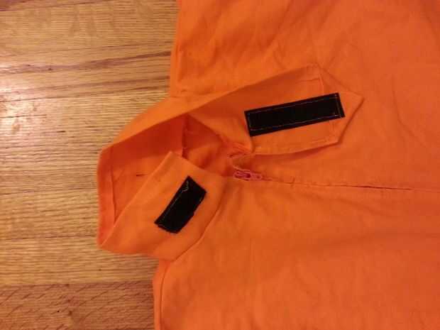 Hay algunas cosas que usted tendrá que añadir, sin embargo. El patrón de mono no tiene bolsillos. No hacemos bolsillos reales. Sólo hacen las solapas superiores de los bolsillos y coser en (en las piernas y brazos) para que el juego parece que tiene bolsillos. Las aletas son la parte más importante. Son rectángulos sólo cercados de naranja tela cosidos en el traje. Una cosa a tener en cuenta es que se necesita hacerlos más grande de lo que piensa. Quiere ser visto de una distancia. Cerca, se ven tipo de absurdo, pero sólo unos pocos pies de distancia, ellos destacan lo justo. Además, ayuda a poner el traje de salto con las botas cuando usted está decidiendo dónde colocar los bolsillos. No tiene ningún sentido en colocar un bolsillo que apenas será enterrado en el maletero.