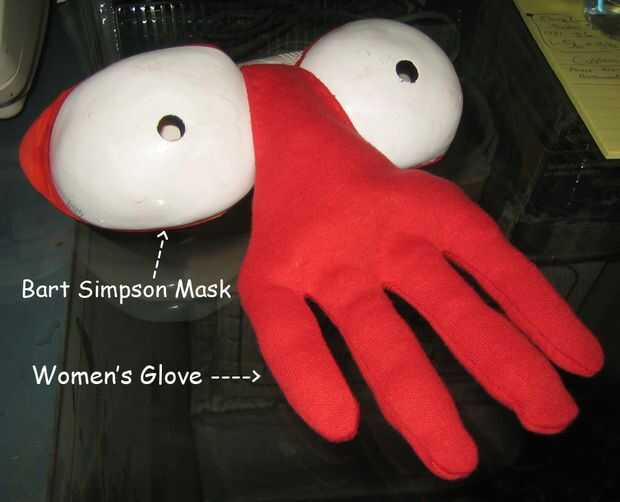 Los "dedos de la boca" fueron un par de guantes de las mujeres. (Cortó el dedo pulgar y mano cosen cierre tomó la parte y atado a sí mismo en la parte posterior, detrás de la máscara, también relleno un poco los dedos.