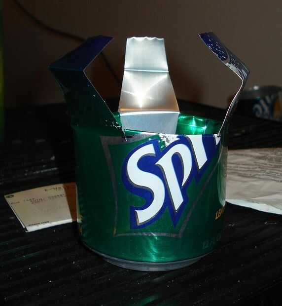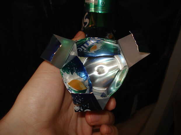 Ahora utilizar cuchillo de pluma para cortar la parte superior. Luego, toma tus tijeras y cortar dedos garra por lo que de la forma cónica hacia el exterior. Luego, doble las aletas de la can que no son los dedos en la lata donde nadie les verá. Por último, poner una curva en medio de los dedos, haciendo un nudillo y luego doblar los dedos hacia fuera en las bases. Trate de no doblar el aluminio hacia adelante y hacia atrás demasiado, o a presión.
