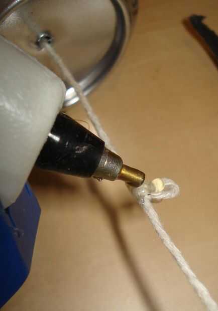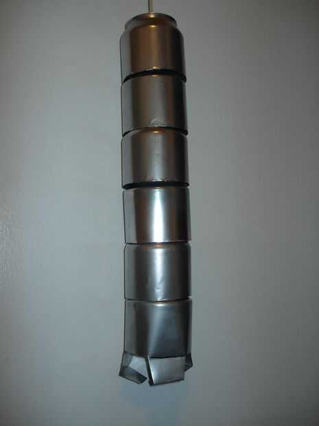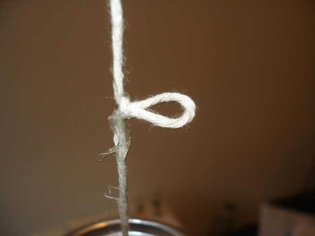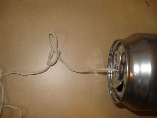 Ahora aquí es donde se pone interesante. Un slipknot sobre donde crees que la siguiente segment/can descansar, pero asegúrese de que la parte inferior de la cadena es el extremo ajustable. Este modo puede ajustar la distancia entre el nudo y la parte superior de la uña si es necesario una vez que deslice en su siguiente puede. Recuerde, los nudos tendrán que ser un poco mayor para los segmentos de brazo de la parte superior de la lata.