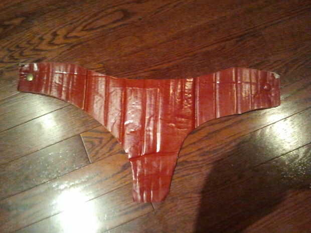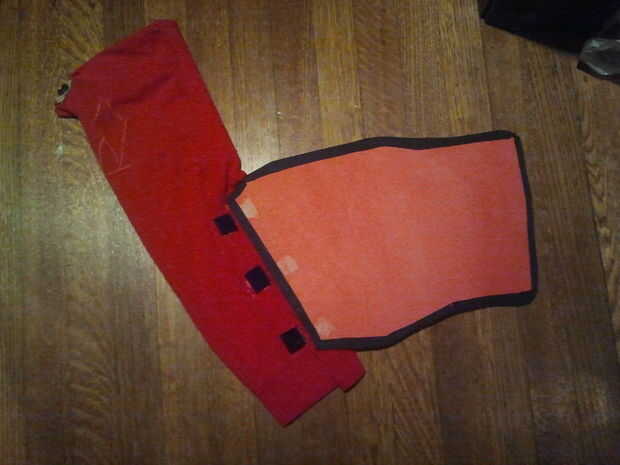 Las piernas estaban bastante simples: cortar, probar, marcar, repita. Esto se hizo hasta correctamente piezas de montaje para los muslos y las pantorrillas. También, tapas de rodilla hicieron partirse por la mitad y una sola pieza fue unida a la cría y la otra la las piezas de muslo. Las piezas fueron celebradas con velcro. Las piezas de muslo fueron atadas a los cortos utilizando broches porque mantiene deslizando hacia abajo.