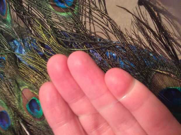 El blanco carretes de hilo en el cuadro marcan donde cosí el sedal en la cola pero si se imagina la curva de la cola como la parte superior de un reloj, que desea en alrededor de 10 y 2.
