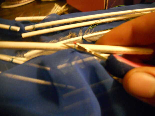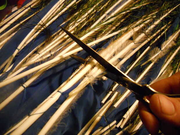 Puede que necesite volver a coser algunas de las plumas si la eliminación de la parte inferior del tallo se afloja para arriba la pluma demasiado.