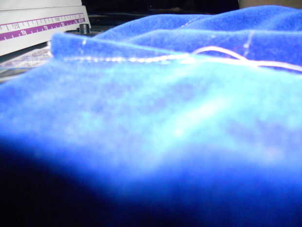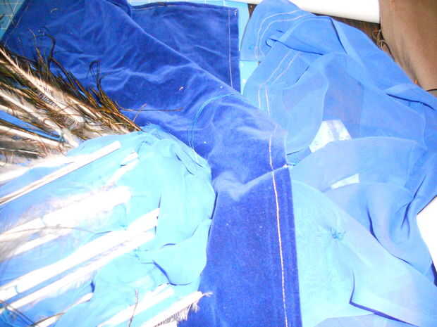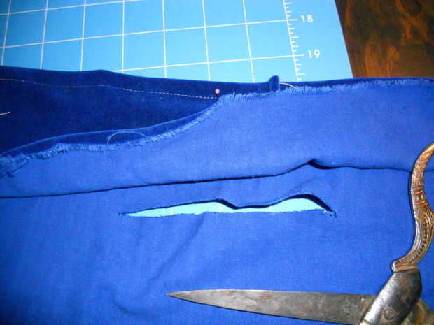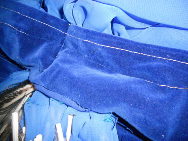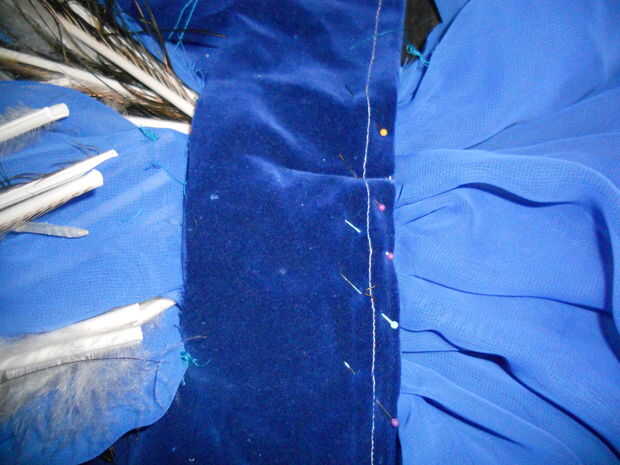 A continuación cortar un 6" hendidura en el extremo posterior de la falda. (Asegúrese de que esté centrado entre sus pliegues si tienes EM) Esto es donde ataremos el ventilador de la pluma.