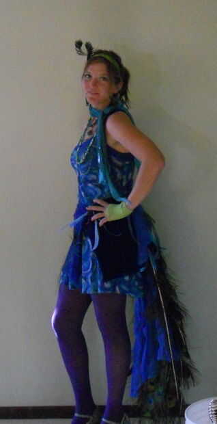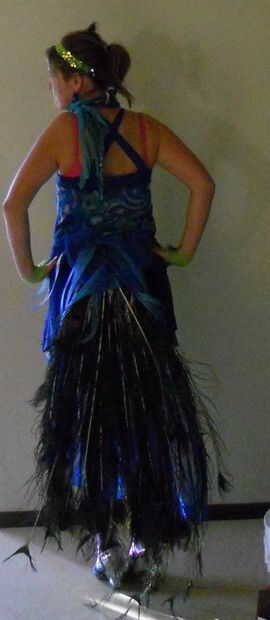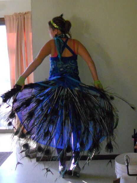 La falda de plumas de pavo real es una pieza de traje impresionante. Cuelga detrás de usted cuando están caminando alrededor de la fiesta... pero tus amigos se sorprenderán cuando se levante el paquete de plumas detrás de su tush y presenta su abanico de plumas. Funciona como un REAL pavos reales plumas trabajaría...