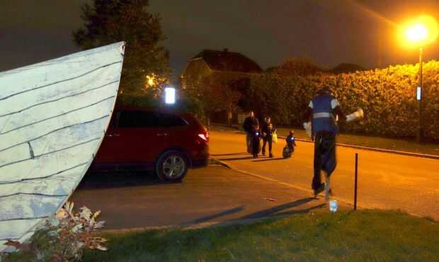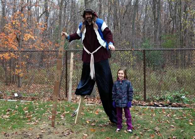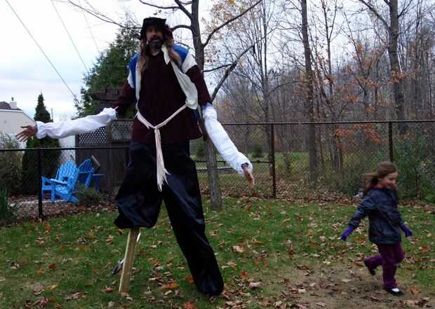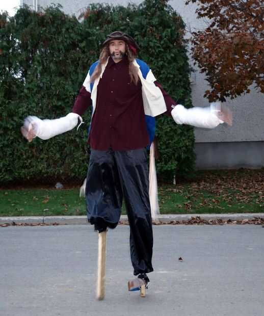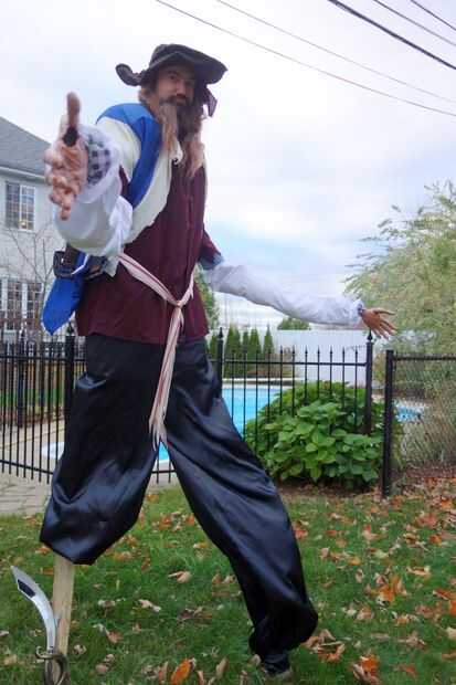 si tiene suerte de tener un trípode como nosotros esto es un disfraz de Halloween muy divertido y muy entretenido. Hemos adquirido un traje comprado pirata, cono espuma de poliestireno, pintura y cadena. Para hacer la pierna de la clavija, hemos vaci