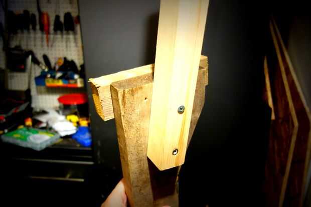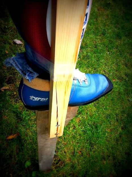 Inicialmente utilicé dos piezas de 2 "x 2" de abeto como "superiores" a mis terneros. La longitud de estos es básicamente el talón a la rodilla y 6 pulgadas. Yo hubiera cuidado de los orificios, compensado en el grano y use tornillos para madera gruesos; pero uno de ellos a pie mediado... Ver la foto, era realmente atemorizante. Me había cambiado a ese lado con un 2 "x 4" y había añadido unos tornillos adicionales en el otro lado.