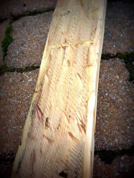 Si uno de los zancos es como pirata peg leg, entonces deberemos vestir a parecen tener algunos grave kilometraje marítima. La madera fue tratada a presión y por eso tenía un tinte verdoso que quería eliminar. Usé mi machete de caza zombie y una amoladora angular para los cantos y dan a la madera un desgastado.