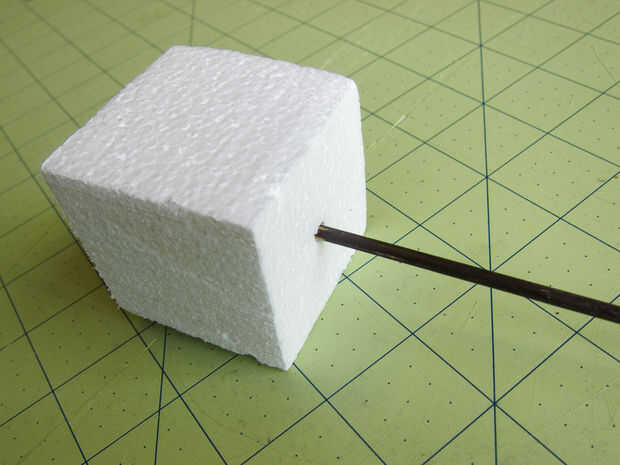 Cortar el pincho, percha o pasador largo 12. Ennegrece con un marcador, mancha o incluso la pintura de la cara para que desaparezca el fondo de la Junta de núcleo de espuma, luego lanza en el cubo de espuma.