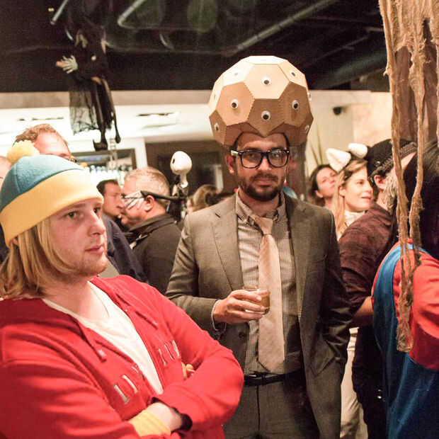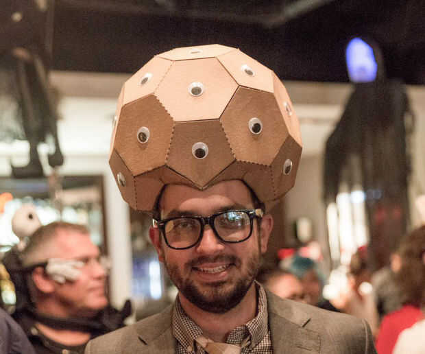 Añadir un traje, corbata y unas gafas de ojo grande enmarcado 60-ish, y el traje es completo. Si tuviera que hacerlo otra vez, probablemente sería pintarla oro (un montón de sus bóvedas fueron pintados oro) y añadir algunos elementos más de monstruo esqe; tal vez fanged bocas para complementar los ojos saltones.