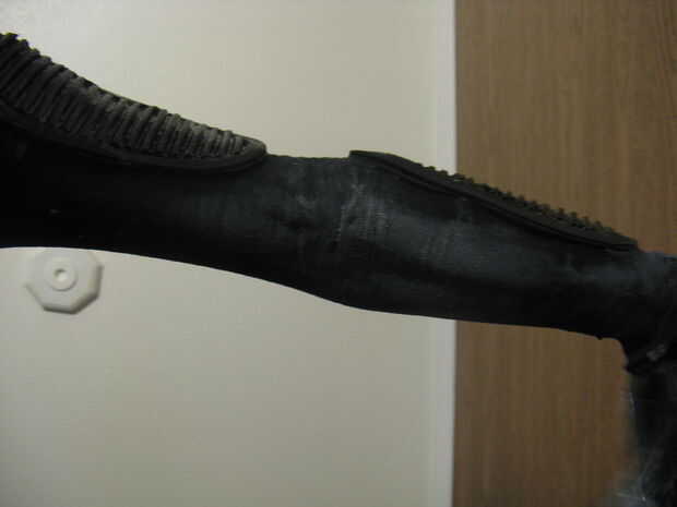 Las armas eran fáciles de tener esos detalles en porque la camisa era fácil deslizarse dentro y fuera. Los pantalones eran una historia diferente. Deslizamiento en ésos era más difícil, con las piernas las arrugas mucho, así que opté por tener detalles parcialmente extraíbles en las piernas. Le adjunto los datos principales en el área de la ingle, ya mantiene la forma bastante bien mientras satisfaciendo para arriba. Luego pegué sobre pequeños trozos de Velcro en puntos específicos. Estos se correlacionan con Velcro en la parte posterior de las piezas de detalle, que después de tener los pantalones, sería capaz de unir y tenga el detalle de las.